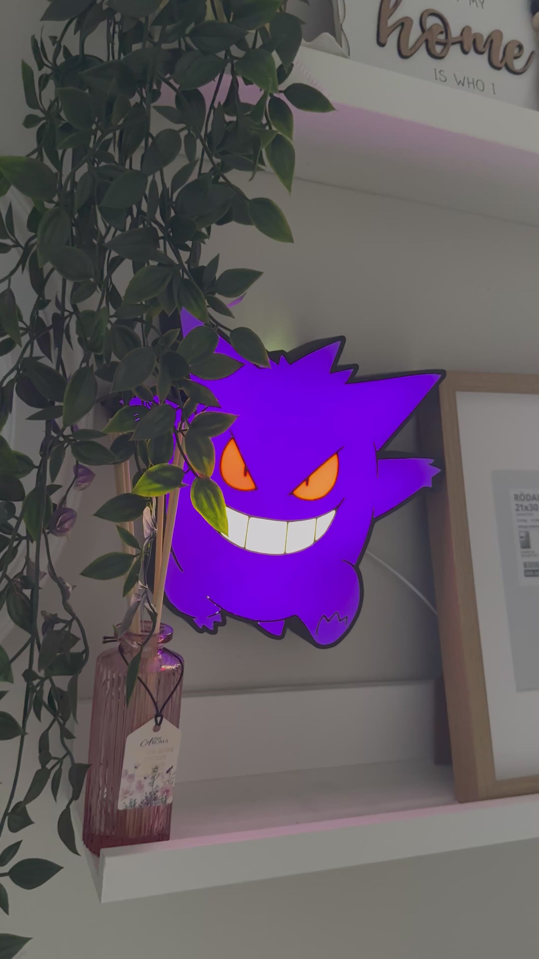 Bring a mischievous glow to your space with this Gengar-inspired personalised name lightbox — perfect for fans of ghost-type energy and bold, playful design. Styled with a spooky yet fun aesthetic, this lightbox adds character and attitude to any bedroom, gaming setup, or collection display.