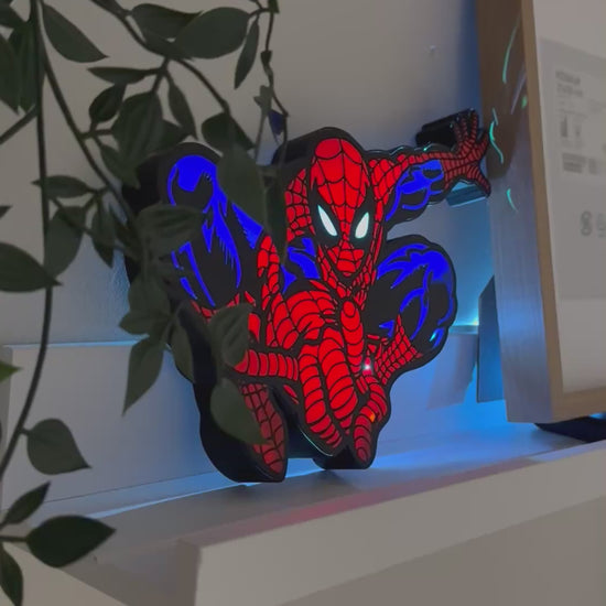 Illuminate your space with this Spider-Man lightbox, featuring a 10" LED display and remote control. USB powered 3 inch cable (usb extensions available on amazon). The versatile RGB lighting allows you to customize the perfect mood for any room. Perfect for fans of the friendly neighborhood hero, this lightbox is a must-have addition to any superhero-themed room.
